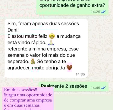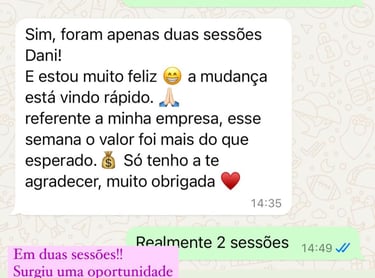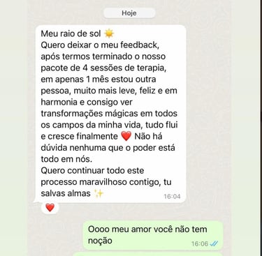 Cada pessoa tem seu tempo. O foco é clareza e organização emocional, não resultados imediatos.